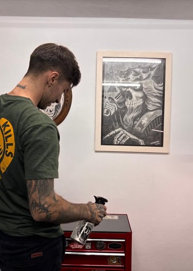 Es nuestro estudio de tatuajes, nos encanta plasmar ideas y desarrollar proyectos en conjunto para tomar siempre una mejor decisión y que puedas llevarte una experiencia excepcional que destaca por su calidad y profesionalismo. Cada tatuaje es realizado con el máximo cuidado, utilizando materiales descartables esterilizados de alta calidad, para garantizar no solo un diseño hermoso, sino también la seguridad e higiene de nuestros clientes. Además, contamos con una amplia gama de insumos a la venta, lo que permite a los entusiastas del tatuaje acceder a productos. En nuestro estudio, cada detalle cuenta y tu satisfacción es nuestra prioridad. Te invitamos a visitarnos y descubrir un espacio donde se fusionan creatividad, técnica y pasión por el arte del tatuaje.
